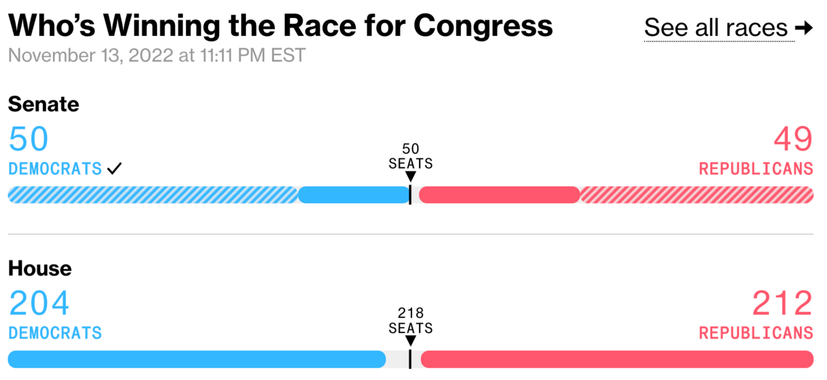 Investors digested news on the political front over the weekend, with Democrats set to keep control of the Senate in the 2022 midterm elections