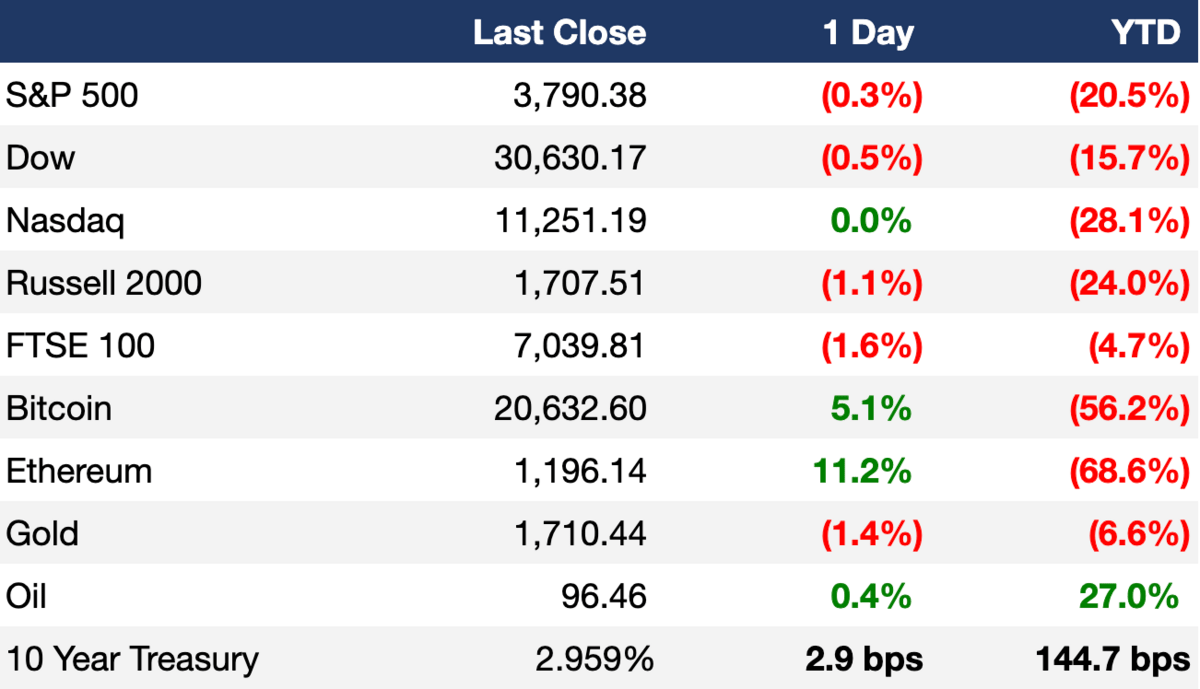 Morgan Stanley also missed earnings expectations with Q2 profits down 29% from 2021 thanks to a drop in corporate deal making; their stock fell 0.4% on the day (WSJ)