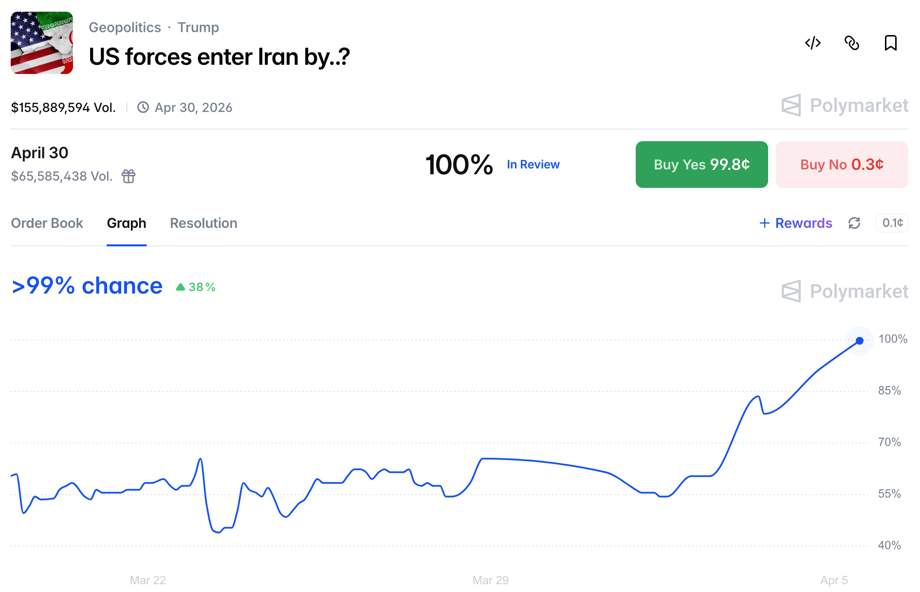 Trade event contracts on Polymarket, the world's largest prediction market