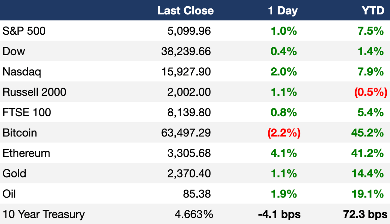 - Thursday: Apple, Block, Novo Nordisk, Coinbase, DraftKings, Apollo Global Management