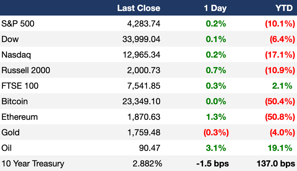 Energy stocks outperformed as oil prices climbed, with the S&P 500 energy sector up 2.5%