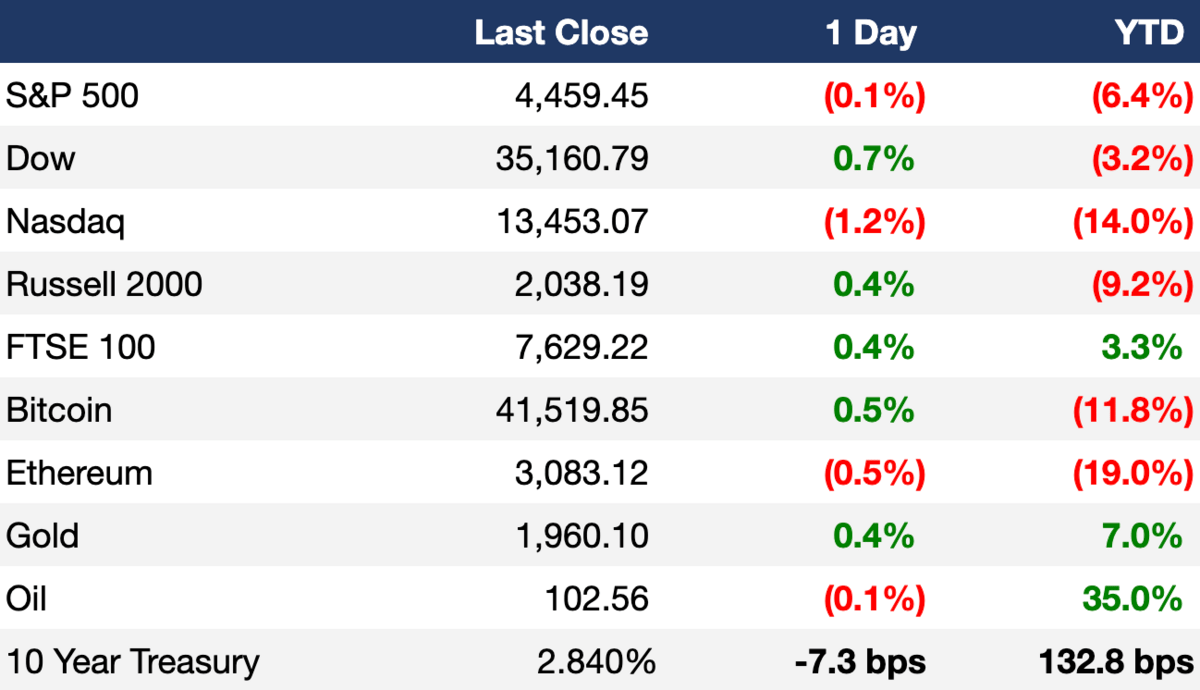 The Dow and S&P 500 were little changed yesterday while the tech-heavy Nasdaq fell 1.2%