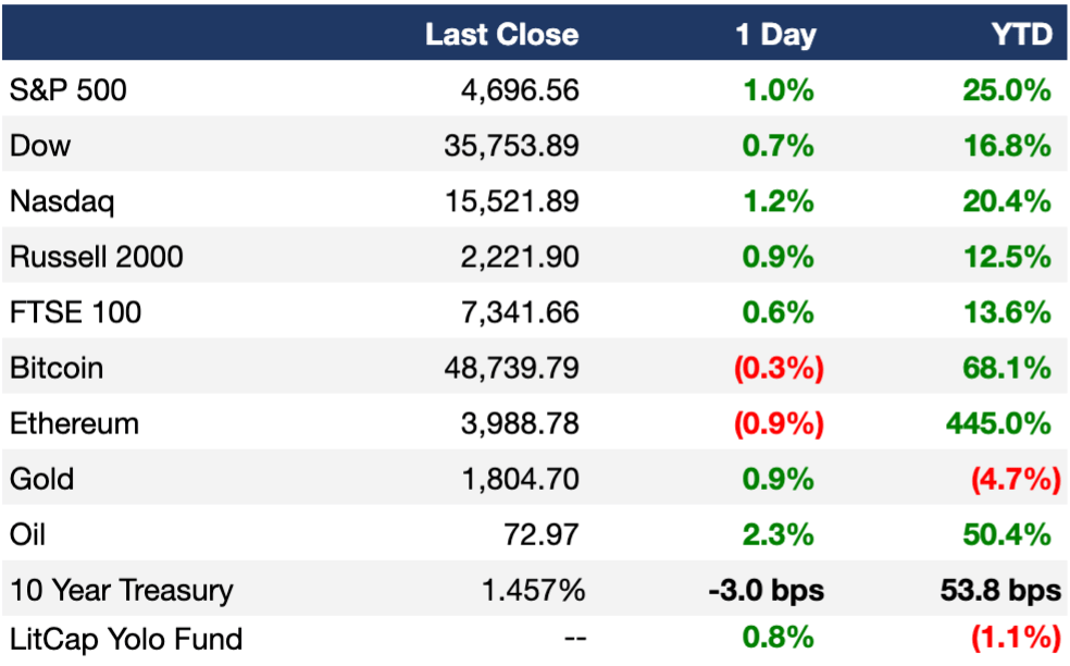 Final reminder: US equity markets are closed on Friday and so is the LitCapital office. This will be the last Exec Sum this week.