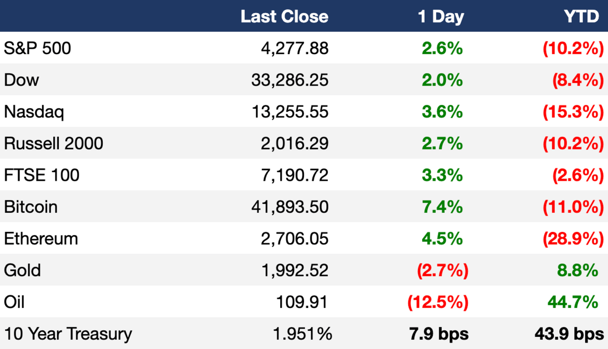 US markets rebounded with the three major averages closing in the green and the S&P 500 having its best day since June 2020