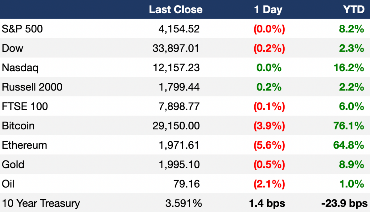 Americans are using BNPL for groceries, McCarthy unveiled a $1.5T debt ceiling increase proposal, UK inflation remained above 10% in March, Oil exports from Russia’s western ports hit a four-year high, CS bankers compete to retain jobs after UBS takeover, Microsoft is developing its own AI chip, and Reddit will charge companies for access to its API.