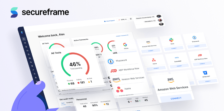 Secureframe’s platform, through intuitive workflows and automated evidence collection via 1-click integrations, backed by a support team of industry experts; will let you obtain a SOC 2 report in weeks, not months, without requiring a heavy investment of your time or team’s resources.