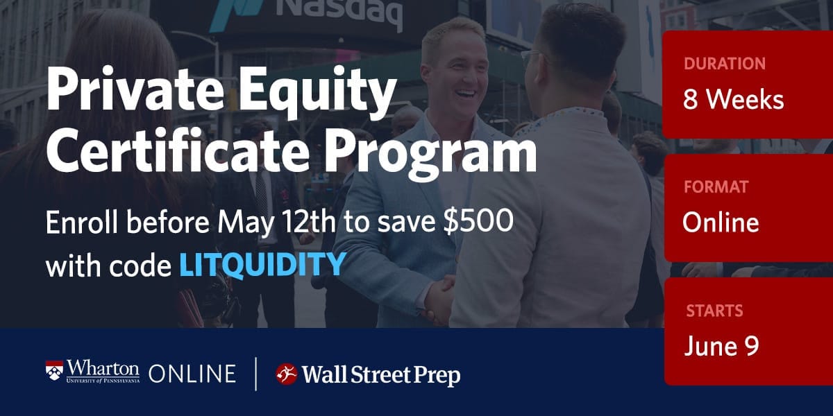 The Wharton Online-Wall Street Prep Private Equity Certificate Program is back! Level up your PE skillset in the globally acclaimed Private Equity Certificate Program and save with our Litquidity discount! Learn more below.