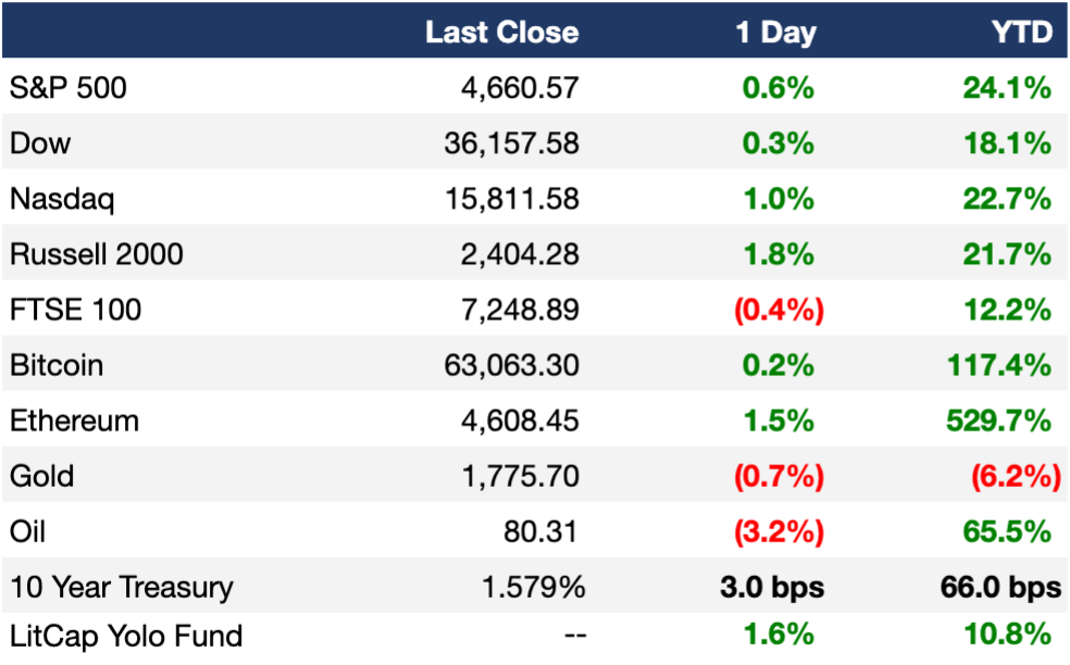 - Talk about a bull run… once more, all US major stock indices closed at new ATHs thanks to J Pow and the Fed saying the economy is finally strong enough for them to start tapering their monthly bond purchases implemented at the start of the pandemicThe Fed said it will reduce buying by $15B/month, putting it on track to end its quantitative easing by the middle of 2022