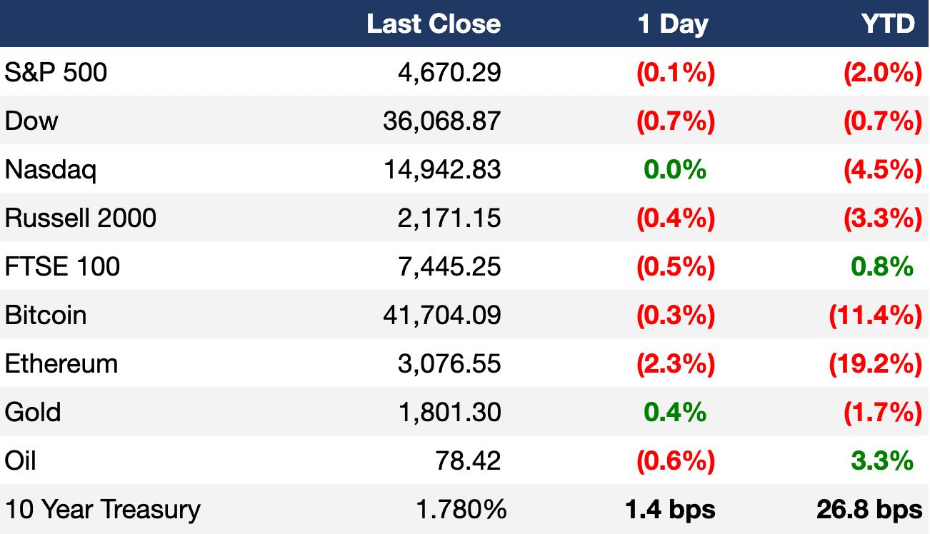 Goldman predicts four rate hikes which means there will probably be zero, Djokovic beat Australia's travel restrictions, AOC caught the 'vid, Eli Manning is now a PE guy, some schools (probably) colluded to restrict financial aid, stocks bounced back in the afternoon, JPow talks to the Senate today, new CPI print drops tomorrow, 'deltacron' might be fake news, and Zynga is getting bought out at $11B. I guess FarmVille was the original metaverse. Oh and Dawgs rolled through Bama last night 🤝