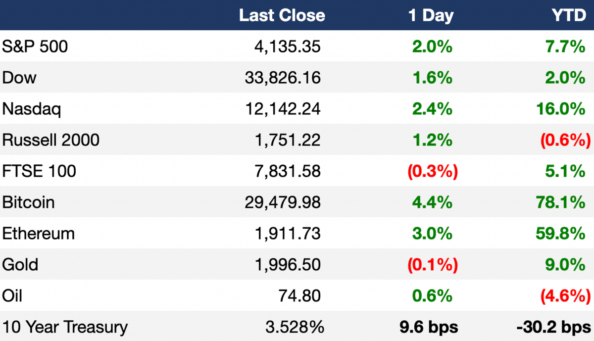 The S&P and the Dow posted their biggest daily percentage gains since Jan 6