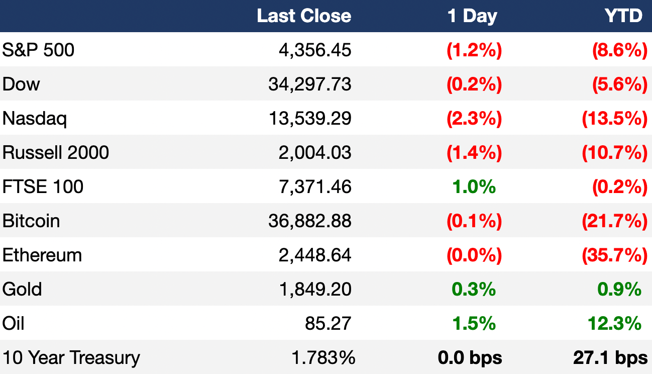 Tech lagged the rest of the market, with the Nasdaq down 2.3% on the day. The tech-heavy index is now down more than 13% YTD.