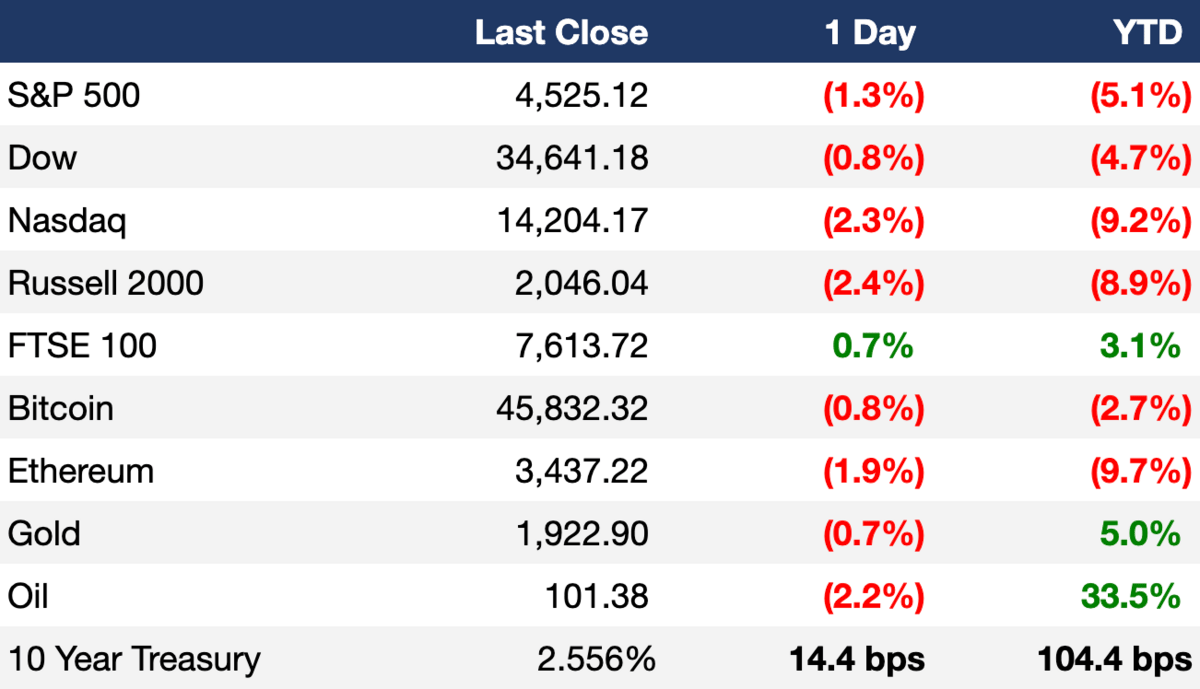 US markets took a dip yesterday after Fed Governor Lael Brainard indicated the central bank could take a more aggressive approach to its tightening policy