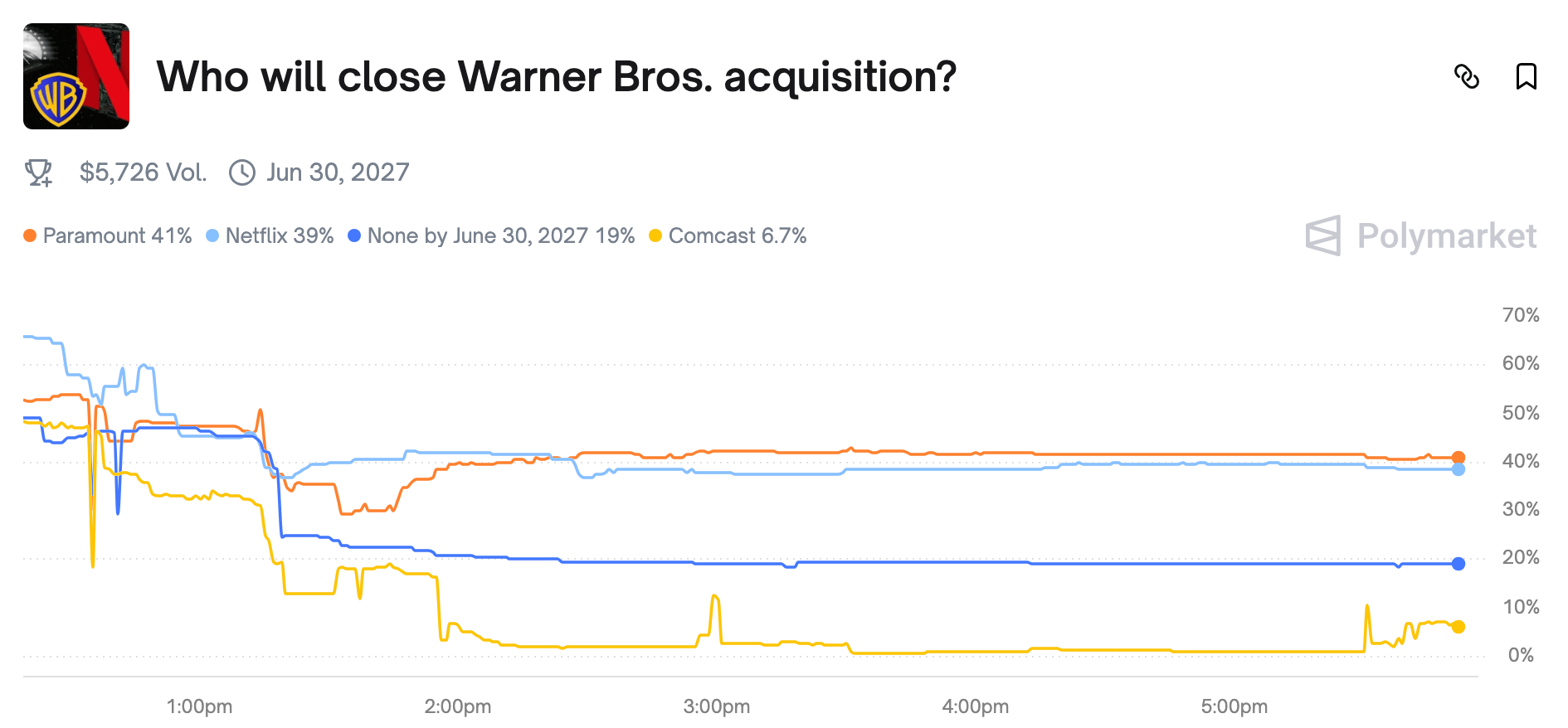 Merger arbitrage has never been so easy. Trade the Warner Bros. takeover saga on Polymarket