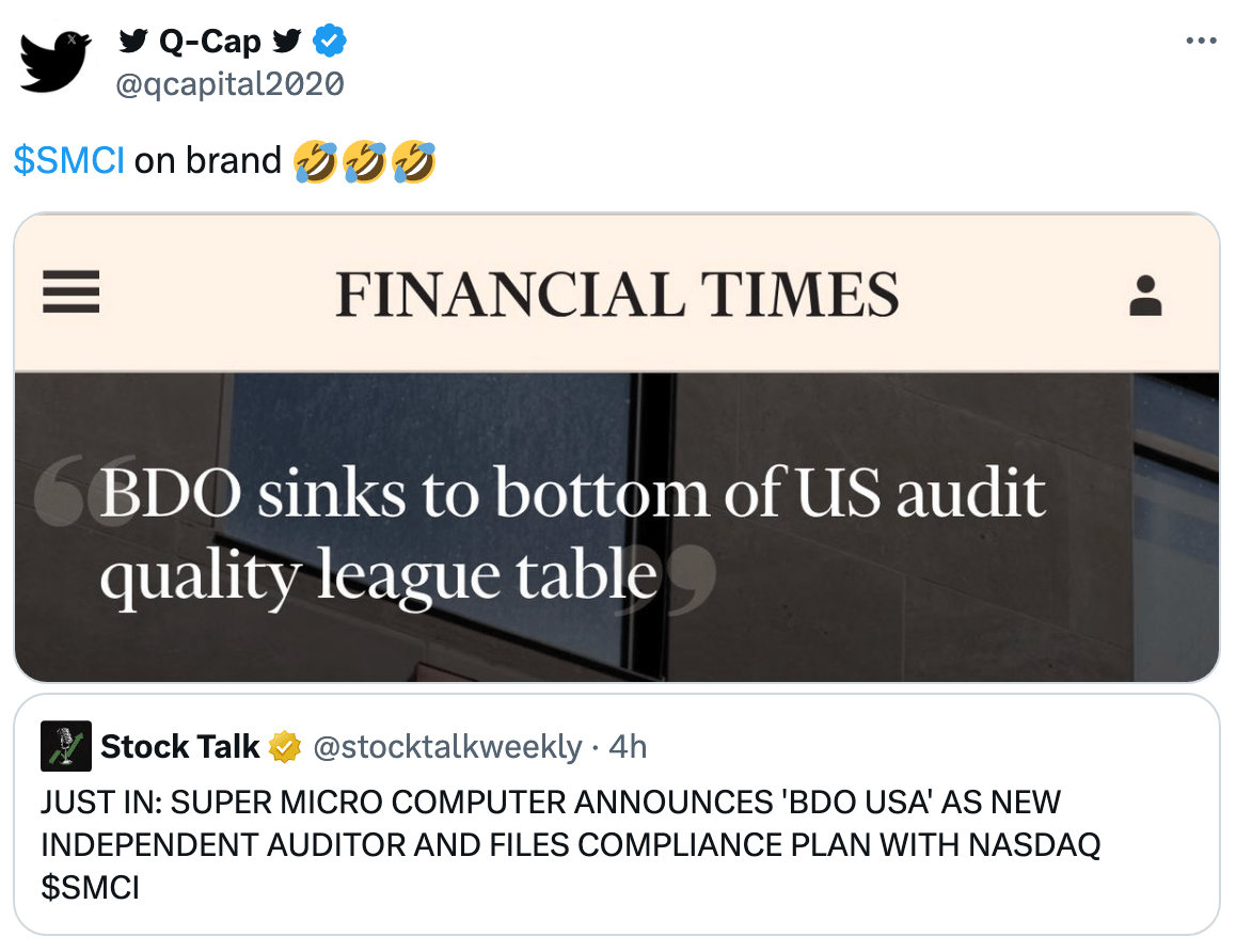 Supermicro named BDO as auditor, plans to maintain Nasdaq listing (CNBC)