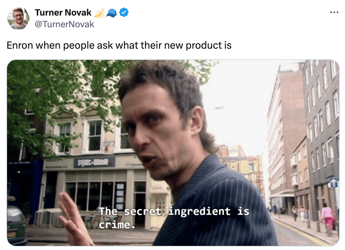 Exactly 23 years after its bankruptcy, Enron has revived teasing a bold vision for everything from renewable energy and infrastructure investments to merch. I honestly can't tell what the 7-day countdown leads to but maybe one of ya'll might get the hint…