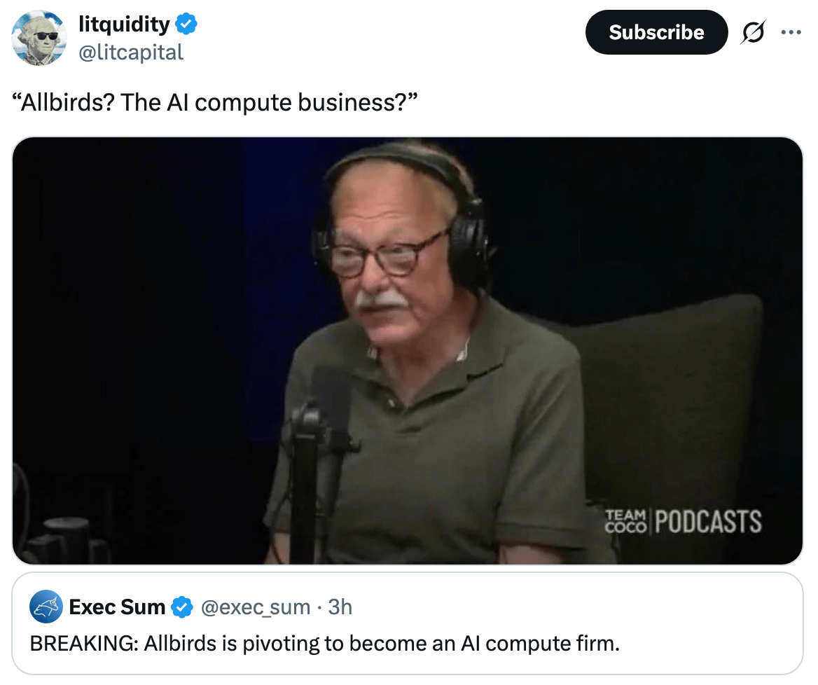 Allbirds soared after rebranding to an AI company (CNBC)