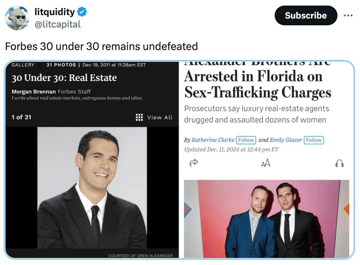 Two star luxury real estate brokers were charged with sex trafficking (FT)