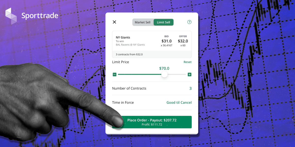 When traditional sportsbooks use American odds like NY Giants to win at +190, it’s confusing and feels structured to make it difficult to understand the price I’m paying. But betting sports doesn’t have to be that way. Sporttrade outcomes are based on a $0-$100 probability scale that easily illustrates the implied probability of an outcome according to market prices where price = probability.