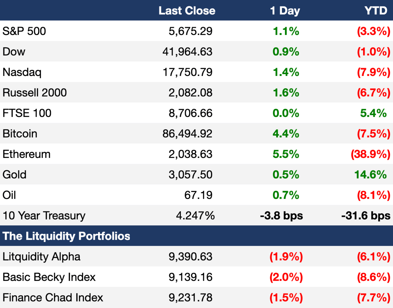 As of 3/19/2025 market close. Litquidity portfolios as 3/18.