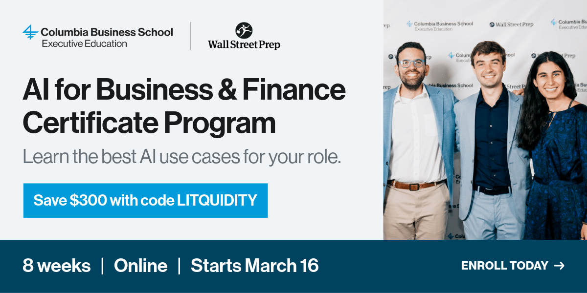 Columbia Business School Exec Ed and Wall Street Prep launched a comprehensive online program on AI for Business & Finance, covering everything from GenAI foundations to advanced ML, all while offering access to a global network of industry veterans. Learn more below.