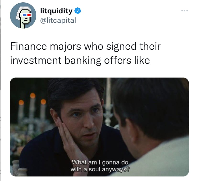 If you're looking to break into finance, lateral, or move out, check out our job board on Pallet, where we curate highly relevant roles for you. We've got 100+ jobs spanning IB, S&T, VC, tech, private equity, DeFi, crypto, CorpDev and more. We sift through all the noise on LinkedIn, Indeed, Monster, etc. so you don't have to.