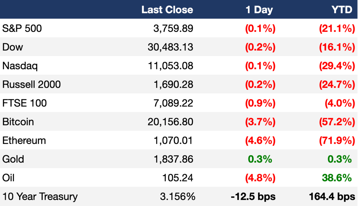 J Pow said the Fed might cause a recession while fighting inflation, Biden wants to suspend gas taxes, the FDA is preparing to ban Juuls, UK inflation hit a 40-year high, Eurozone consumer confidence is at rock bottom, and Sam Bankman-Fried keeps bailing out crypto exchanges.