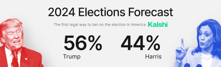 Trump's lead remains at 12% on Kalshi. Get $20 to trade the election when you deposit $100 or more. See live odds and bet now!