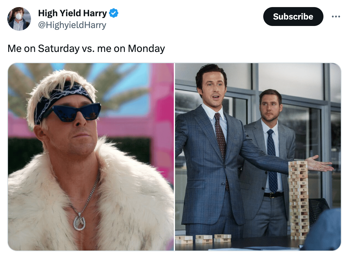 Labor force participation for working-age Americans hit its highest level since 2002, hedge funds are competing for battered commercial real estate, Twitter is rebranding as ‘X,’ Taylor Swift’s tour is stimulating the economy, ‘Barbenheimer’ had a blowout weekend, Alibaba is not joining Ant Group’s share buyback, and Spotify might raise its premium prices.