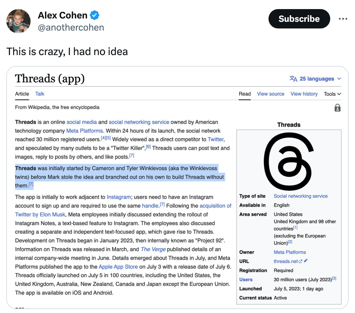 Threads became the most rapidly downloaded app (NYT)