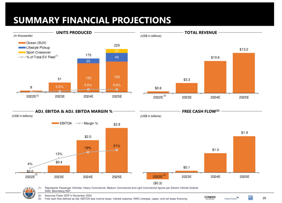 But the biggest benefit that SPACs provide to companies? Companies going public through SPACs can give multi-year financial projections that aren't allowed in traditional IPOs. Take electric vehicle startup Fisker, for example: