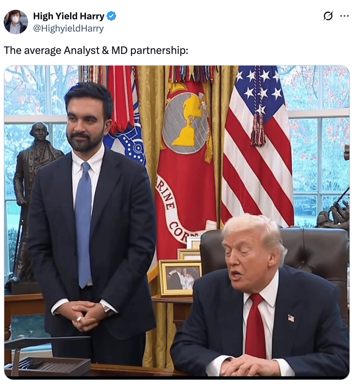 BLS canceled the October CPI report, Trump met with Mamdani, hedge funds are scrambling to cover shorts, PE firms are turning to dividend recaps at record pace, McLaren bottled it again, and software engineers were hit the hardest in Amazon layoffs last month.