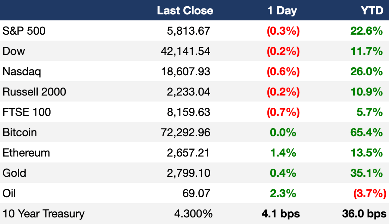 US stocks fell yesterday as investors digested Big Tech earnings and economic data