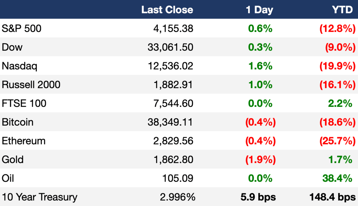 Citi's London trading desk caused a Swedish stock flash crash, stocks rebounded to close green yesterday, Berkshire bought a big Activision stake, the 10Y yield hit 3%, Amazon defeated the latest worker unionization effort, and Grindr sold user data.