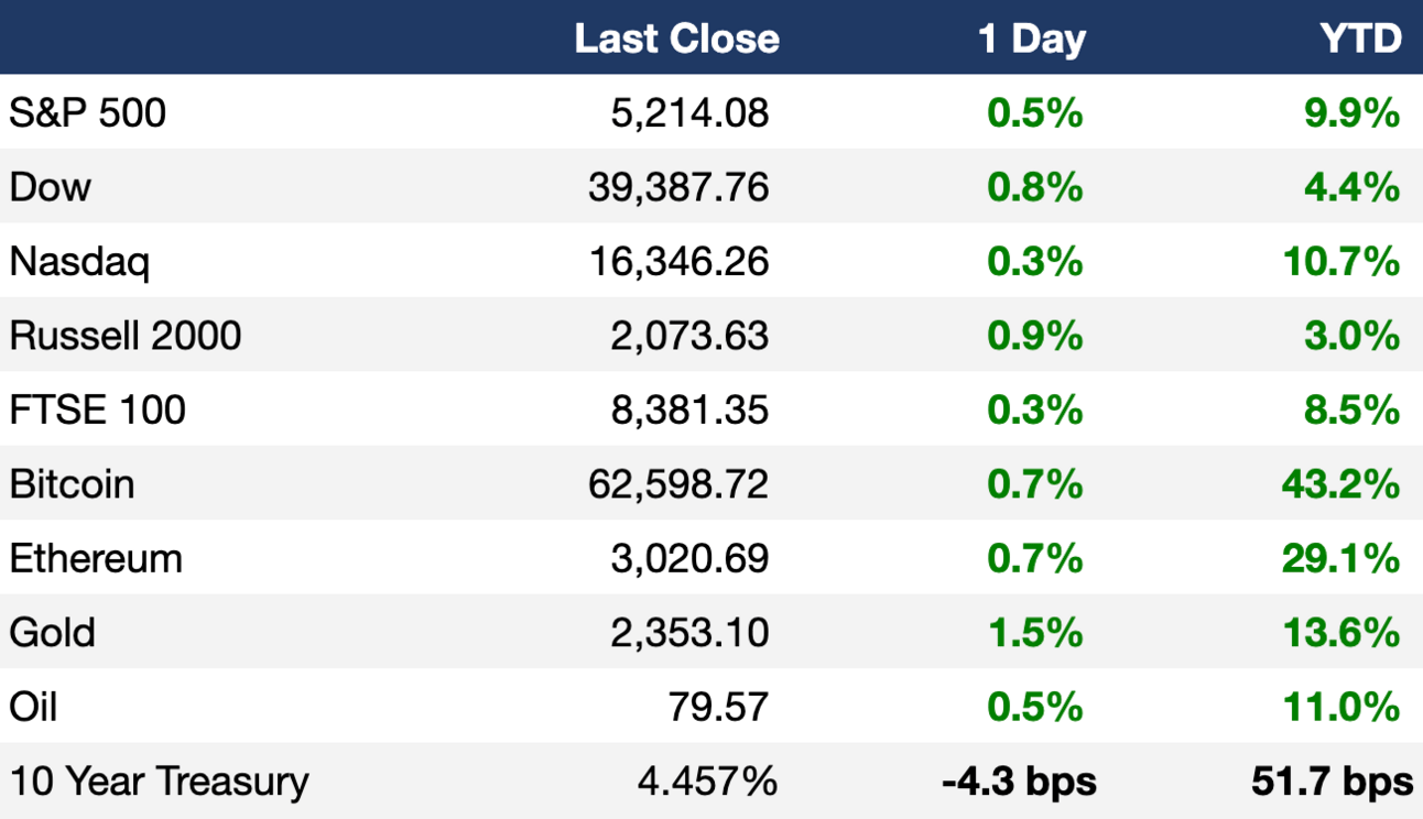 Stocks rose yesterday as new jobless claims data rekindled hopes for rate cuts this year