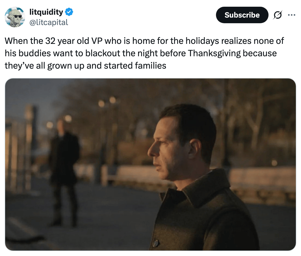 Also, a data center outage at CME disrupted global markets for ten hours on Friday. But who really noticed anyway? 🦃
