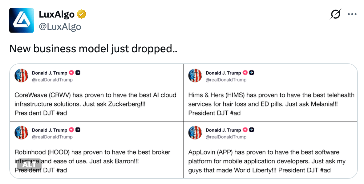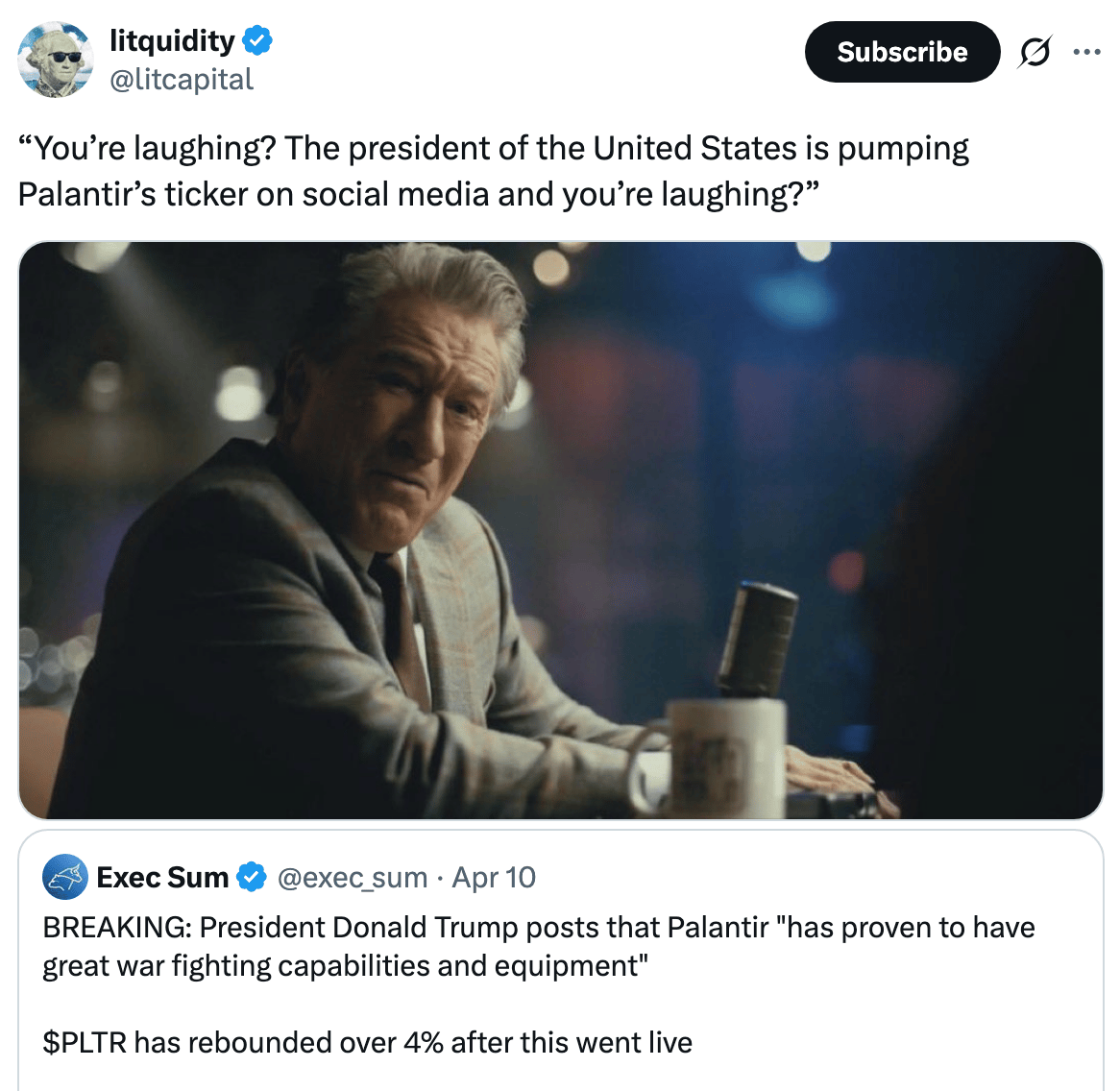 Trump also took some time to pump stocks on Truth Social. Incredible evolution of market dynamics this year, just when you thought it couldn't get any more absurd.