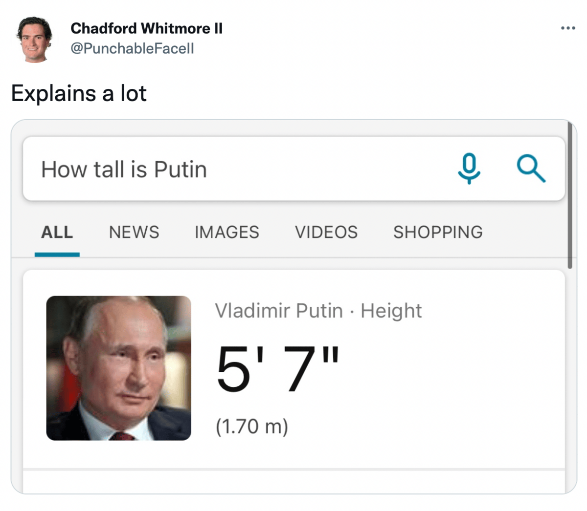 Could not have time an island vacation at a worse (or better time). Stocks rallied hard in the afternoon as investors realized that it literally can't get any worse, Russia's stock market got drilled, Elon and Kimbal Musk are having problems with the SEC, Biden and the West roll out heavy sanctions against Russia, Ukraine's official Twitter account is winning the internet, and Ken Griffin is pulling out of his Melvin Capital investment.