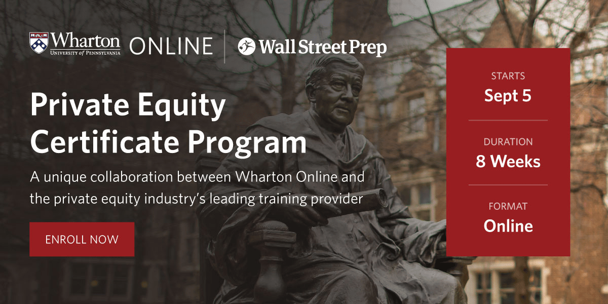 Want to sharpen your private equity knowledge? Wharton Online and Wall Street Prep just opened enrollment for their upcoming Fall Cohort for the Private Equity Certificate Program. Interested? Enroll today!