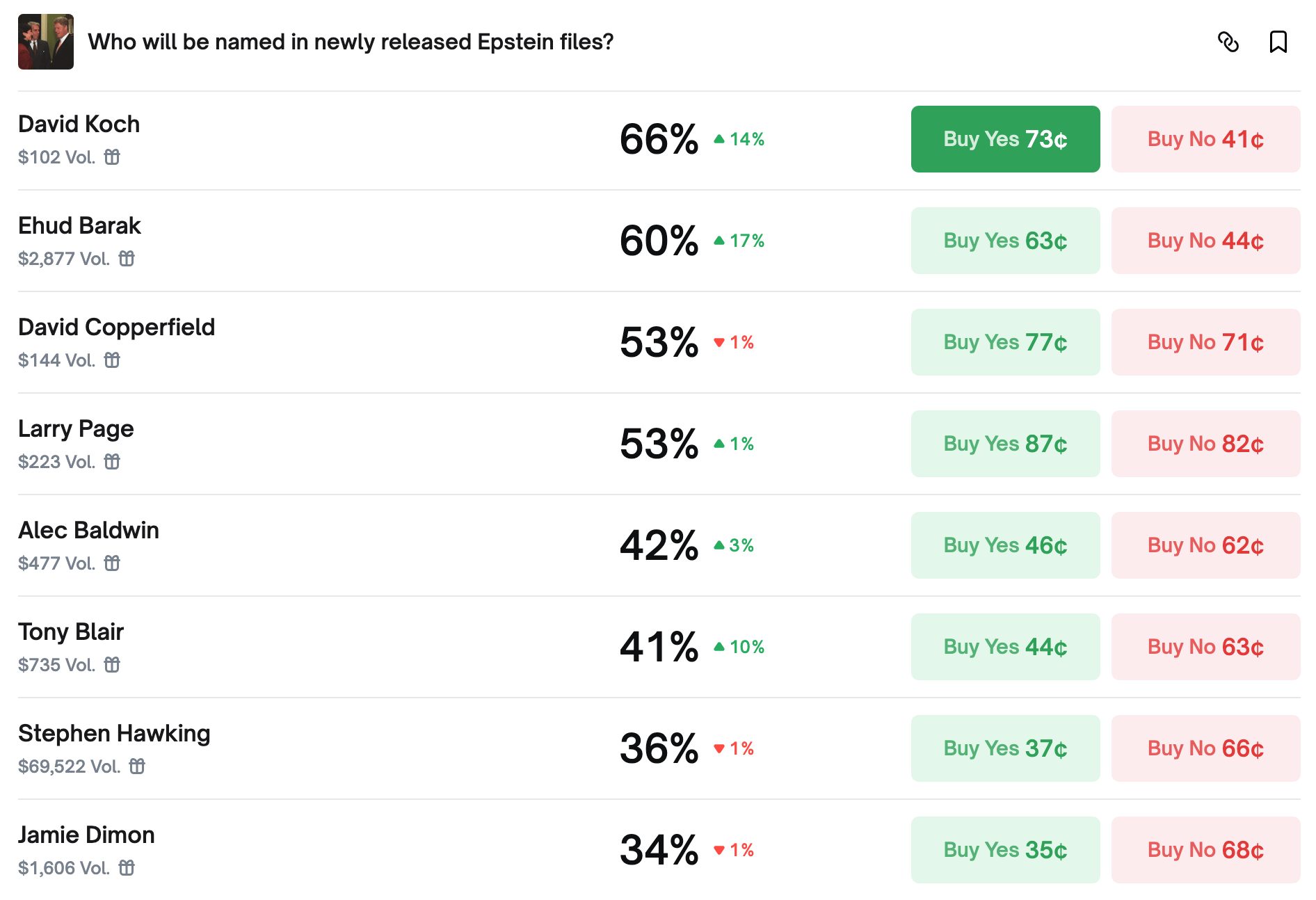 Track and trade live odds on Polymarket.