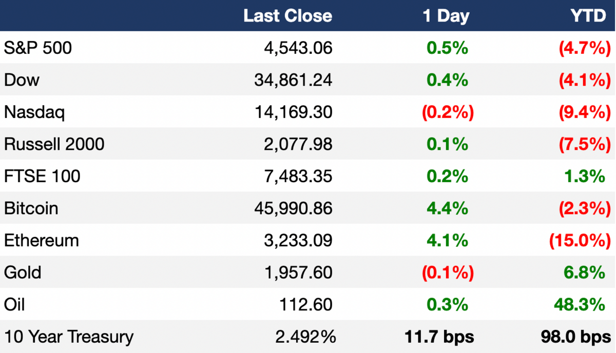 These market moves came as investors continued to monitor both Russia’s war against Ukraine and expectations about the Fed's plans to hike interest rates
