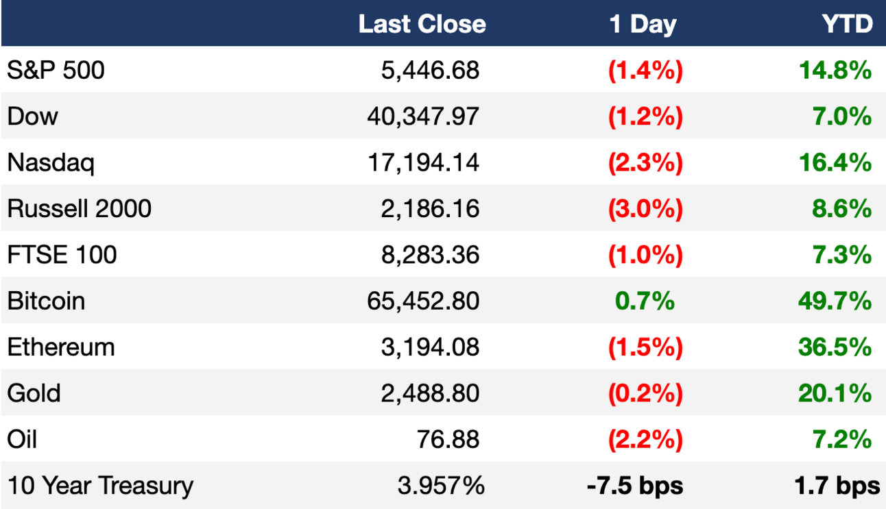 Apollo Global fell 7% after reporting flat Q2 net income as losses from interest rate hedges offset record gains in fees (RT)